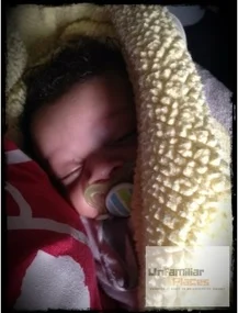 As I’m walking, the baby is growing increasingly agitated for some reason. At 3 months old, I know his little grunts by now. He’s nearing the edge of hysteria and I know that in approximately 7 minutes he will be in full blown crazy; shrieks, wild and uncontrollable arm flailing, just a general sense of unhappiness.